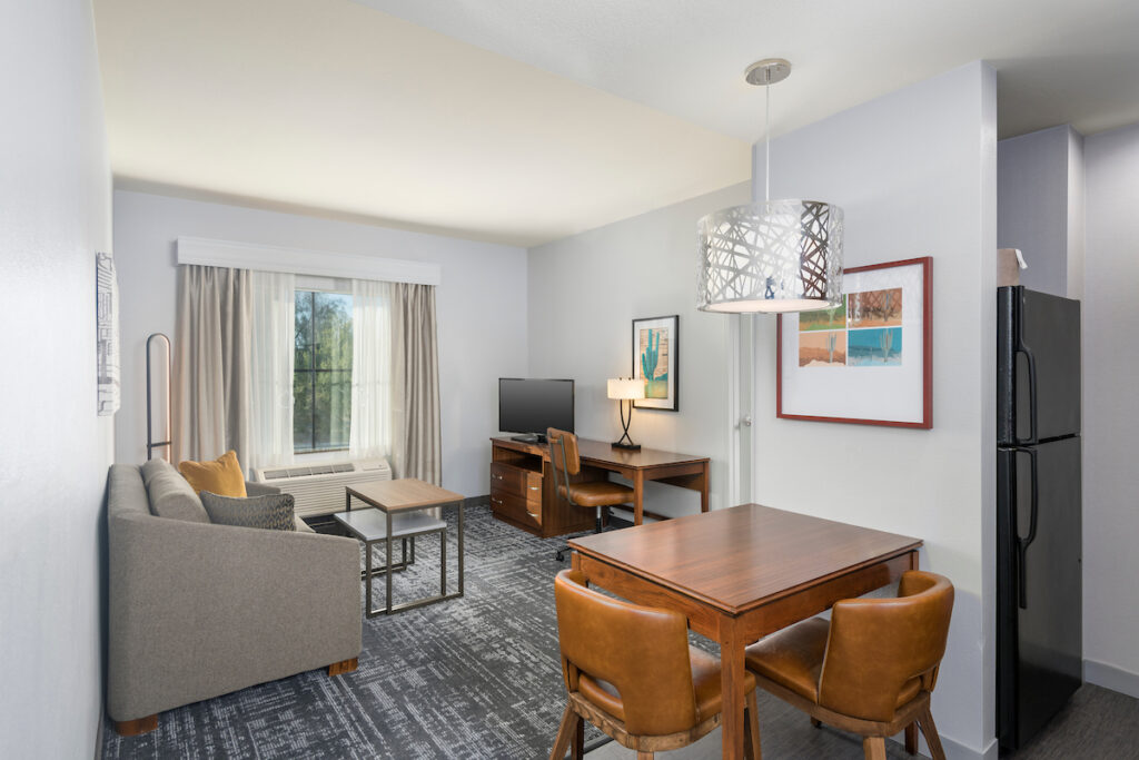 Located right off I-17 with direct highway access to Deer Valley Airport (five minutes) and Sky Harbor International Airport (25 minutes). Our Happy Valley hotel is near many popular Phoenix attractions, including Wet N’ Wild waterpark, Reach 11 Sports Complex, and Outlets at Anthem. Walk over to the Happy Valley Towne Center for a variety of shops, restaurants and entertainment venues.